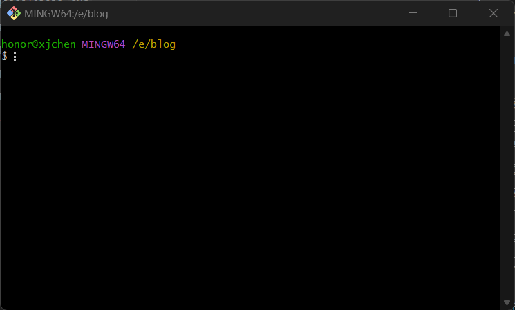 - 打开git bash,用过linux系统的会有种熟悉的感觉绿字是用户名,紫字是MINGW64,这是给windows设计的GCC,黄字是所在的文件夹