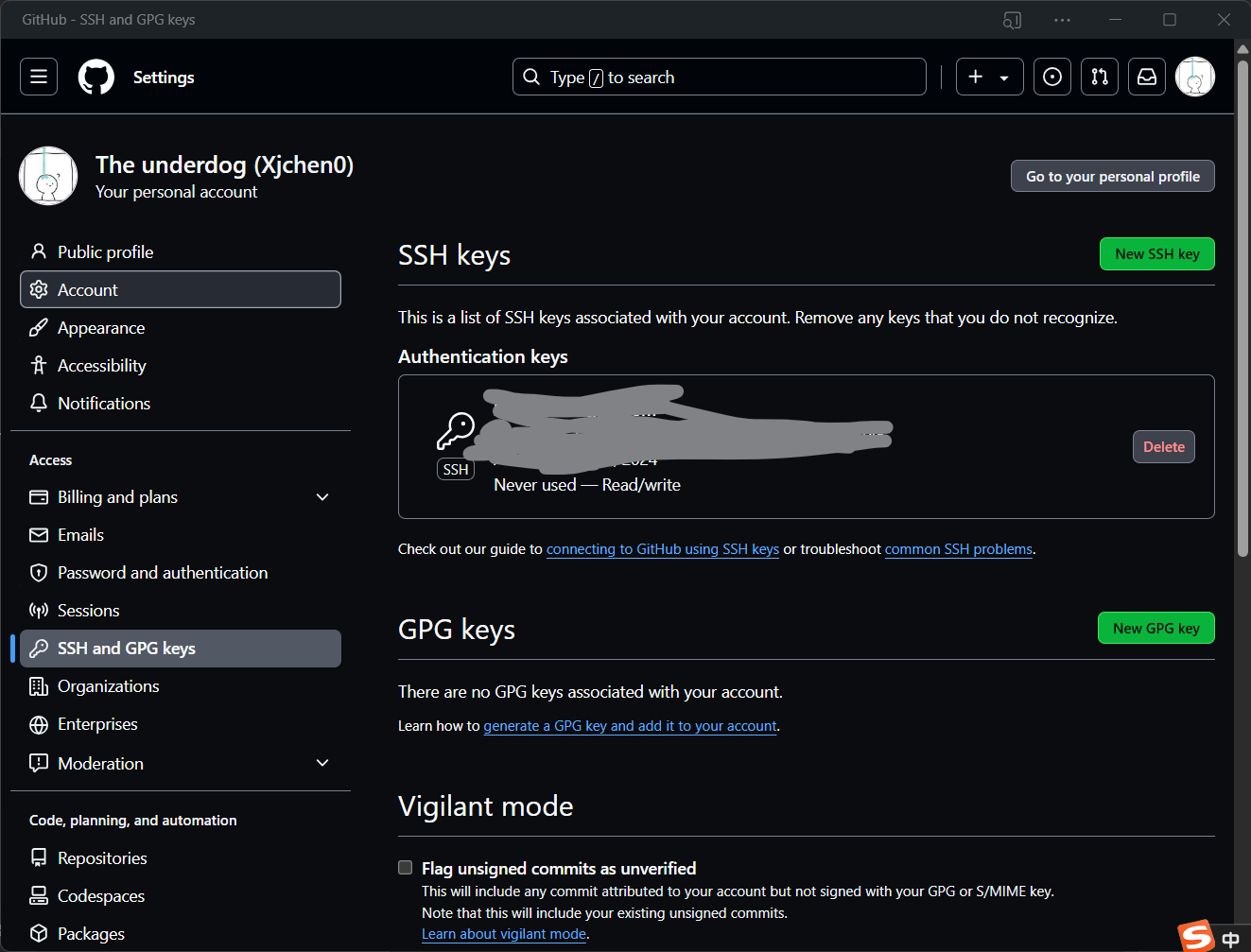 添加新的SSH key,把复制的内容粘贴到key值里面就行了