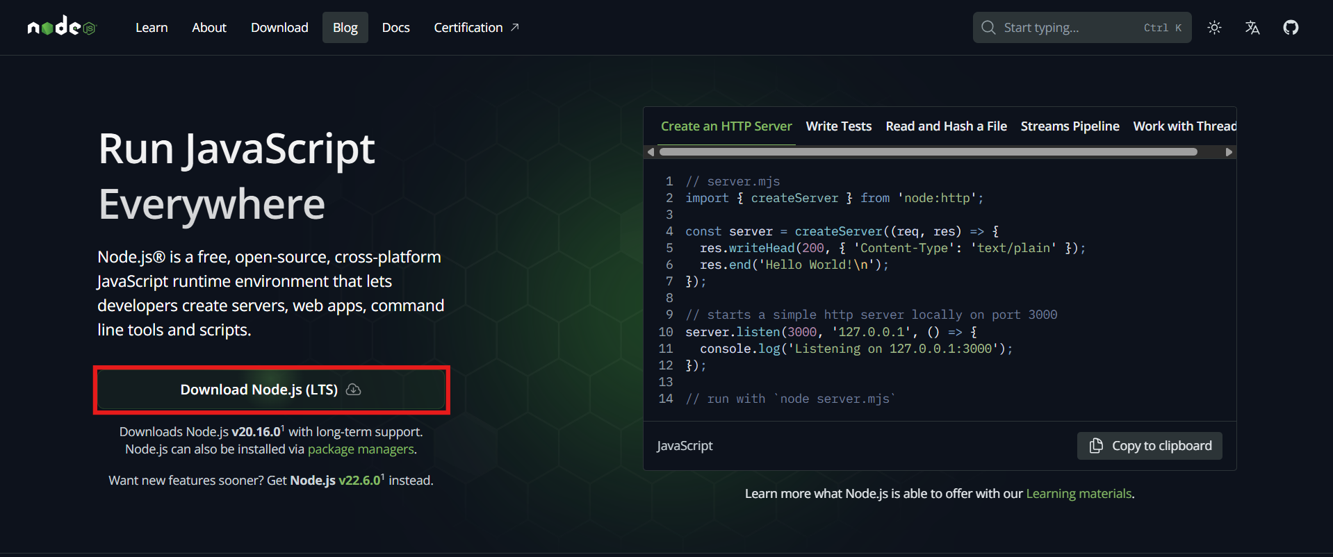 - 直接进入官网下载最新版Node.js — Run JavaScript Everywhere (nodejs.org)