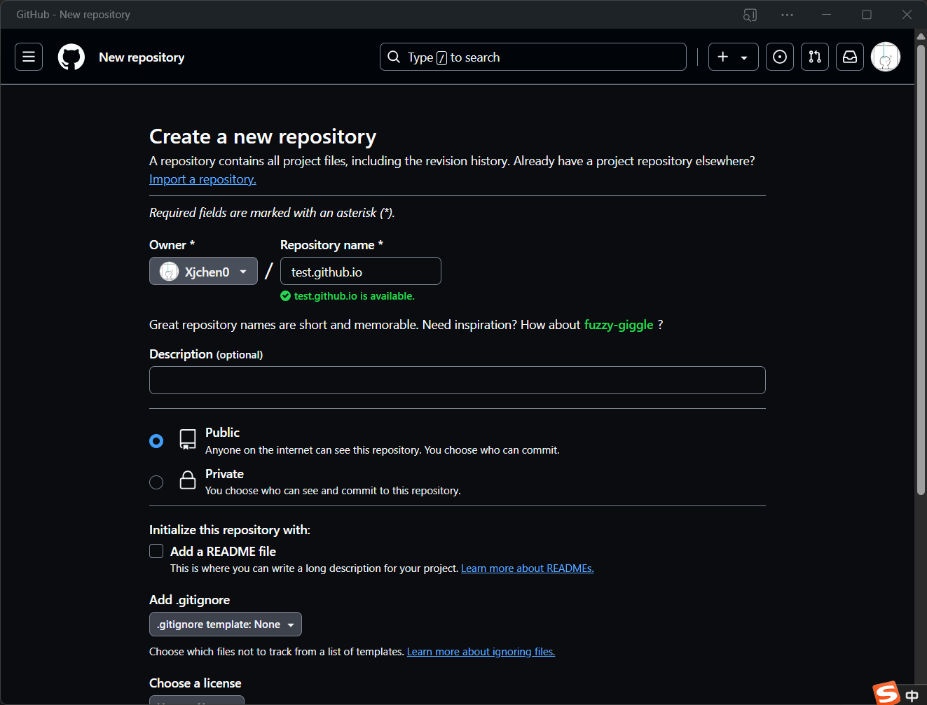 - 打开Github并登录账号,创建一个新的仓库,命名为"xxx.github.io ",并且复制仓库地址